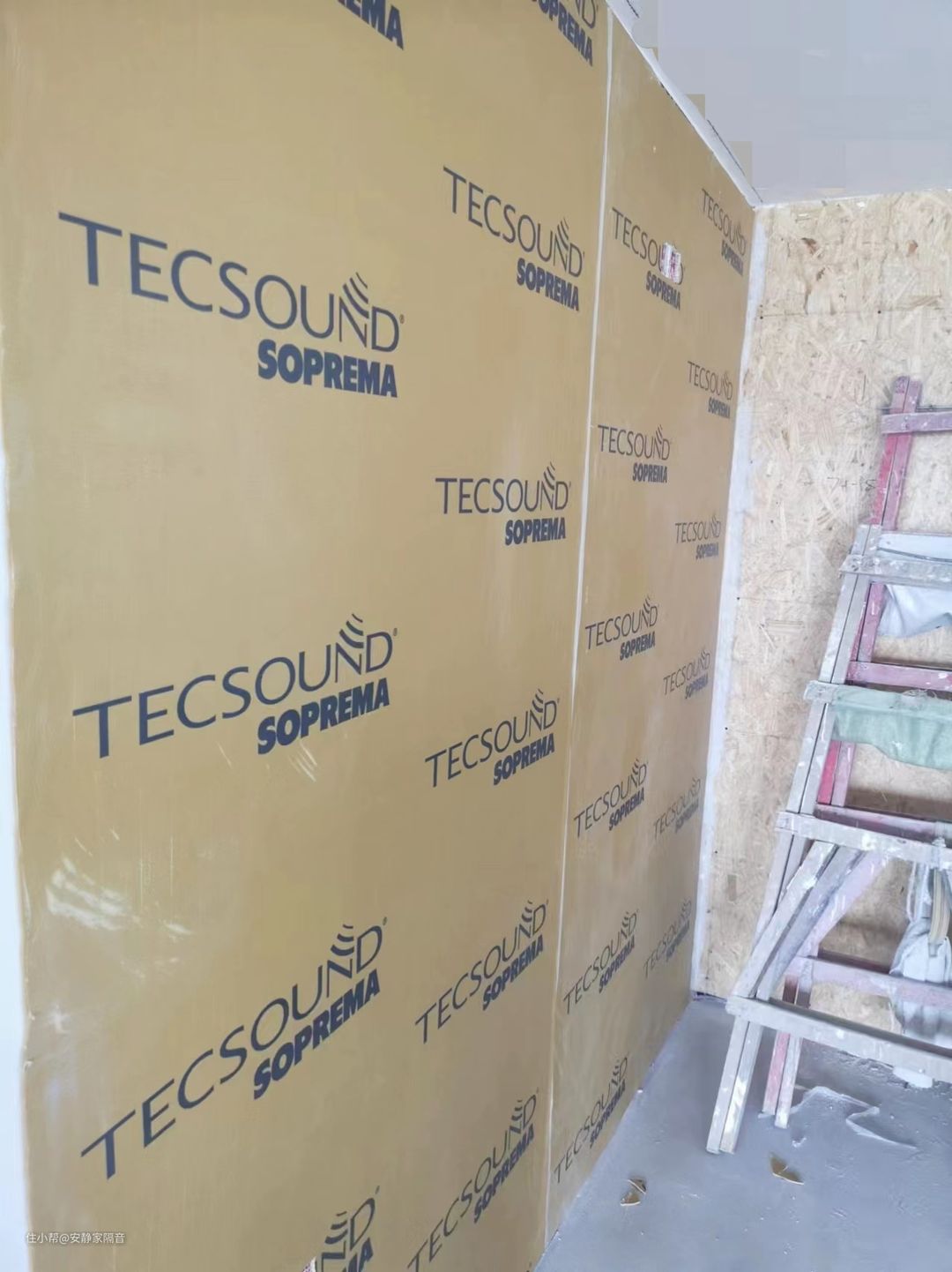 经过商量,最后确定6.8厘米超薄悬浮隔音方案,厚度上满足了要求。并且调整材料配置,在有限的6.8厘米厚度上,最大限度的压榨出更多的效果。