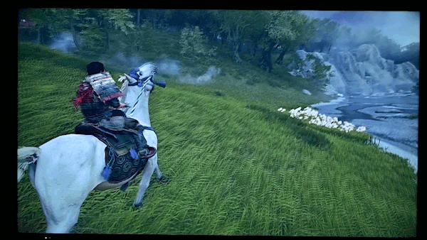 4K 60Hz的《对马岛之魂》场景,5X慢速拍摄有明显的卡顿感,当然,这已经是普通电视最好的表现了。