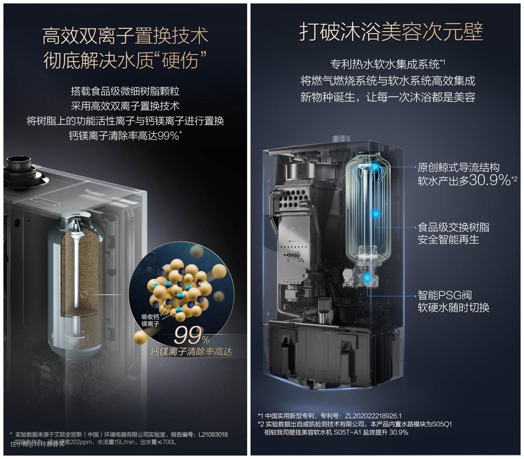 最大卖点就是自带软水系统,经过热水器加热后出的是软水,让家中没安装软水机的人,也能享受到软水洗澡的舒适。