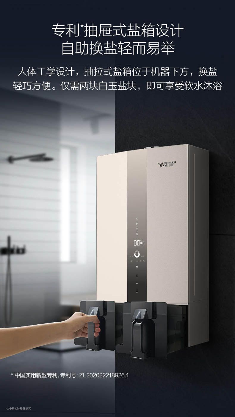 我新房装修时,特意安装了软水机。在体验过那种顺滑感后,觉得软水机确实是个好东西。但需要安装空间,定期冲洗排废水等,有点安装门槛。A.O.SMITH/史密斯看到了这个切入点,把软水机合并在热水器里了……