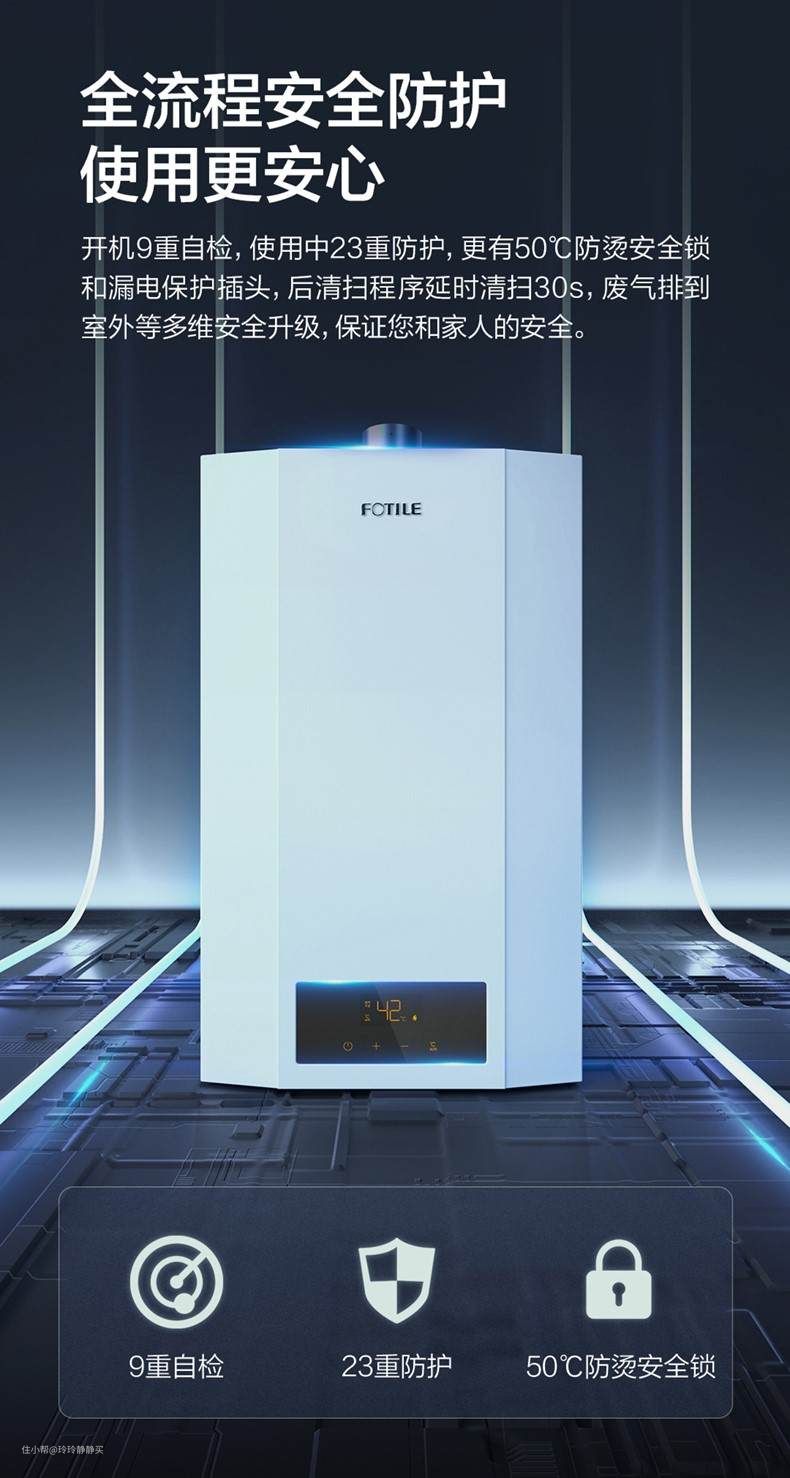 拥有预约沐浴+快捷操作功能,方便家中有老人使用;另有10重安全保护,断电闸+水电分离技术,使用安全可靠。