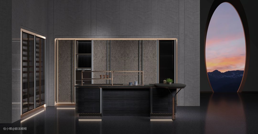 特色遥控厚重电动岛台,营造沉稳大气的氛围体验感。非使用状态时合拢,留出更多活动空间;烹饪时通过遥控匀速展开,扩大岛台工作空间,方便智能。