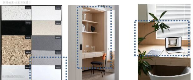 在设计对造型的时候 都会把整个空间的材料颜色全部都会拟出来,后期材料配色也是以这个全套PPT为主要依据。
