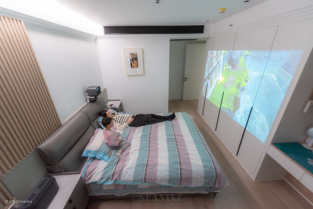 一直想躺着和老婆孩子一起玩游戏,前不久终于给主卧升级了一下影音配置,使用了投影仪+HiFi蓝牙音箱+Switch的影音游戏配置,现在每天可以在睡前和老婆孩子一起玩玩游戏看看电影听音乐,享受幸福人生了。