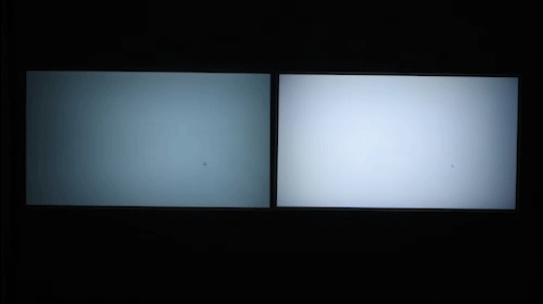 不过从测试画面来看,左侧的小明Q1均匀性要更好一些,右侧的知麻Z1亮度分布不太均匀,中间画质更好,边缘有下降,白色画面不明显,蓝色画面非常明显,知麻Z1都有些发白了。