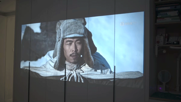 测试环境为客厅,120寸幕布,投影投射60吋左右的画面进行测试。
