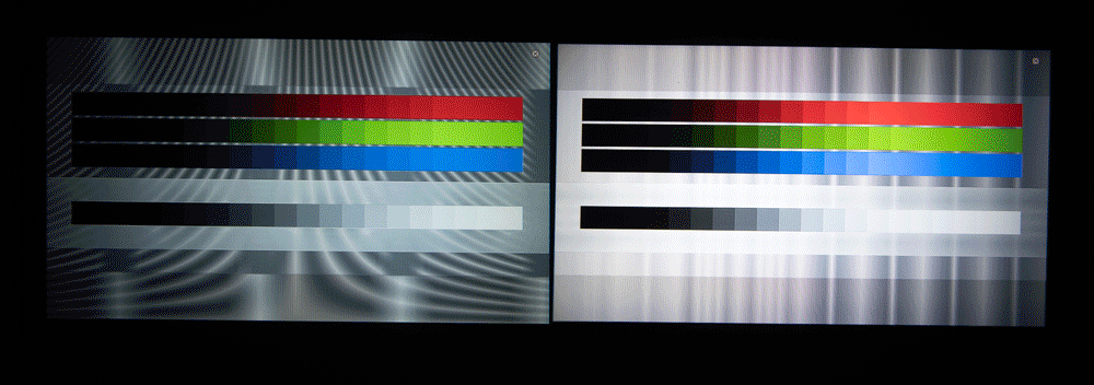 测试图为4K电视分辨率专用图,左侧为小明Q1右侧为知麻Z1。