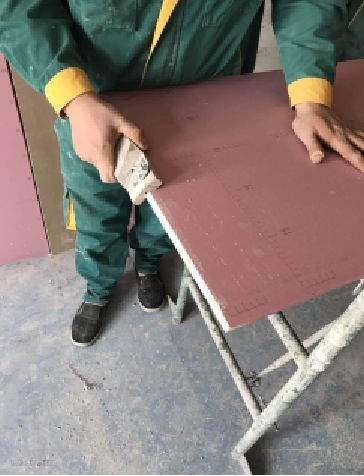 在吊顶时,在拐角处我们是用一整张石膏板而并非是两张板拼接起来,所以石膏板与石膏板之间接缝处V型倒角,加大腻子接触面,防止板子热胀冷缩,接缝处开裂。
