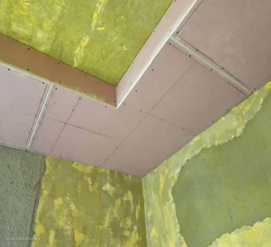所以我们采用"L"型的整块石膏板,增加拉力、后备纤维网,有效分散转角受力,避免沉降、开裂。