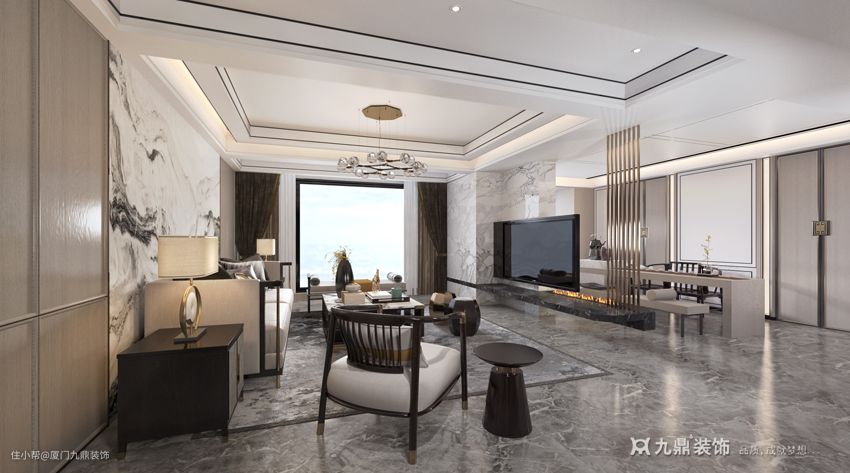 宝嘉誉峰新中式,大横厅,餐岛一体化设计