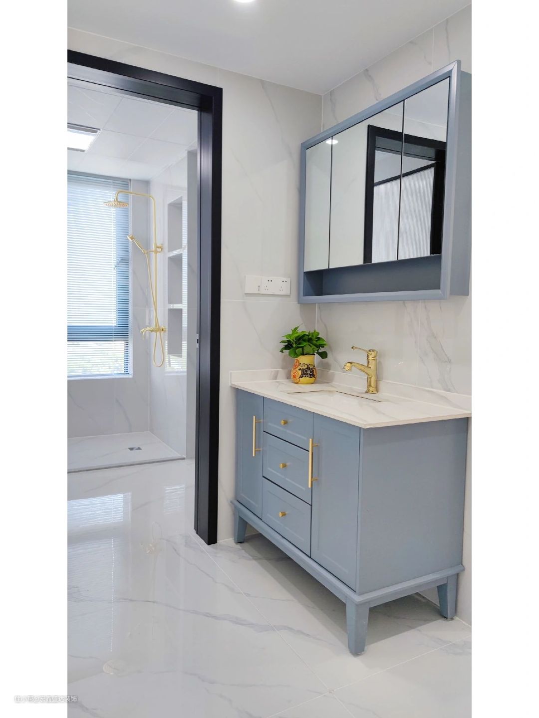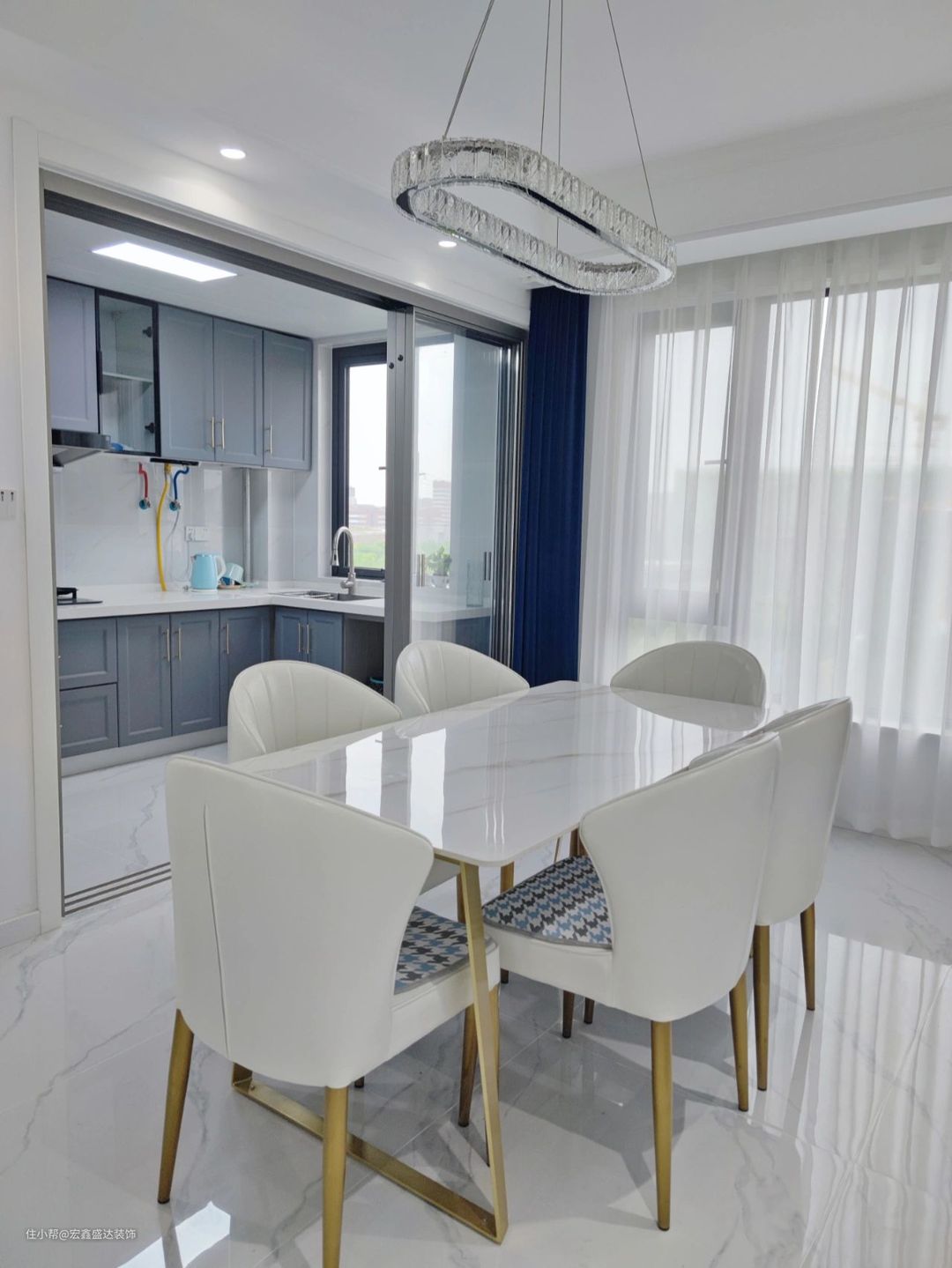 其实客餐厅就是大白墙➕pu线条,白色瓷砖➕白色踢脚线,中灰色沙发背景墙➕中灰色的厨房柜门,宝蓝色格栅隐形门➕宝蓝色窗帘,装修一定要看自己喜不喜欢,不能被别人左右自己的想法。