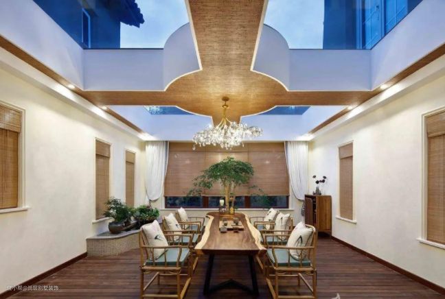 阳光房最大的好处就是光线充足,顶部为玻璃屋顶,白天可以晒太阳,晚上可以赏月,十分惬意舒适。