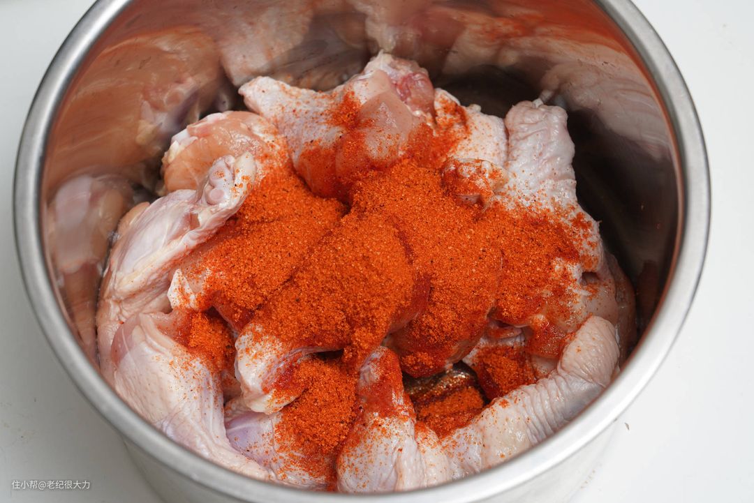 先烤个奥尔良鸡翅,这也是老纪本期空气炸锅十道快手菜谱中的第一道。先用适量的奥尔良腌料腌制鸡翅根大约2小时入味。