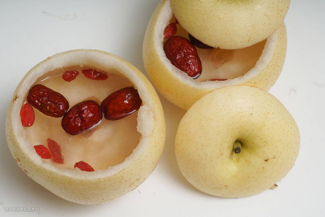 一道空气炸锅甜品。需要雪梨、冰糖、红枣和枸杞。