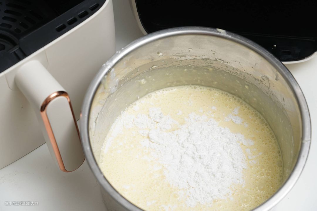 一次加入所有淡奶油继续拌匀后,加入玉米淀粉拌匀,就OK啦!