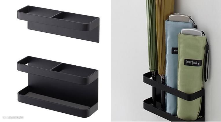 如果玄关不大、家中人口数较少、需要收纳的雨伞数量也不多,不妨选择磁吸式的伞架,直接安装于铁制的玄关大门、可黏贴磁铁的墙面上,体积小又不占位,能使空间看起来更加整洁清爽,不过需留意雨伞的重量或不平整的门面,都会影响到雨伞收放时的稳定度,其至取出时可能有掉落的情形,因此建议雨伞收纳数量少的屋主选用。
