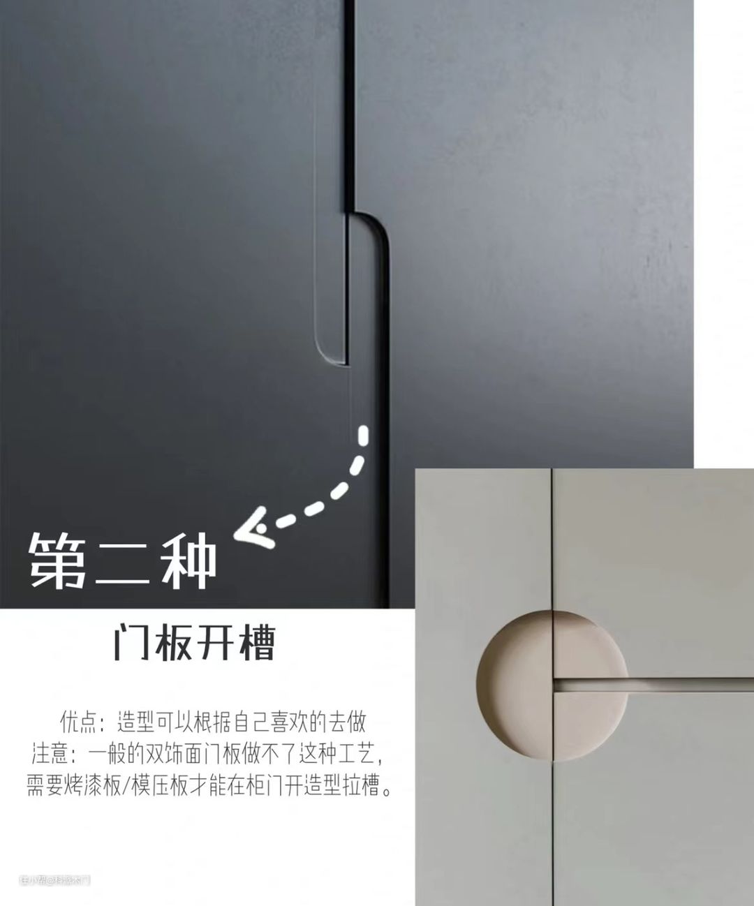 第二种柜门开槽拉手:柜门开槽,只适用于烤漆门板和模压板