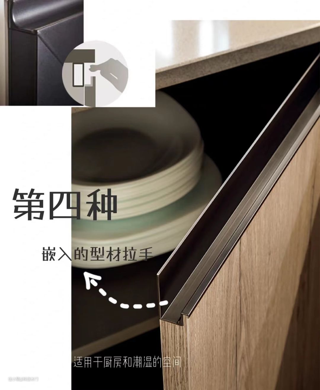 第四种内嵌型材拉手:一般都用在厨房里面,因为比较防水防潮