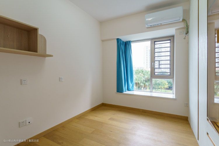白色的窗帘保证了遮光性的同时还能弱化空间的光线,打破了全屋灰色的沉闷,增加了空间的趣味性。半面墙的定制柜子,也大大增强储物性。部分和主卧也是一样的做法。