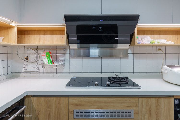 就功能性而言,无拉手设计让厨房空间更加有秩序。操作台和烹饪区合理分区,在操作台设置了灯带,弥补光线不足,防止切到手。