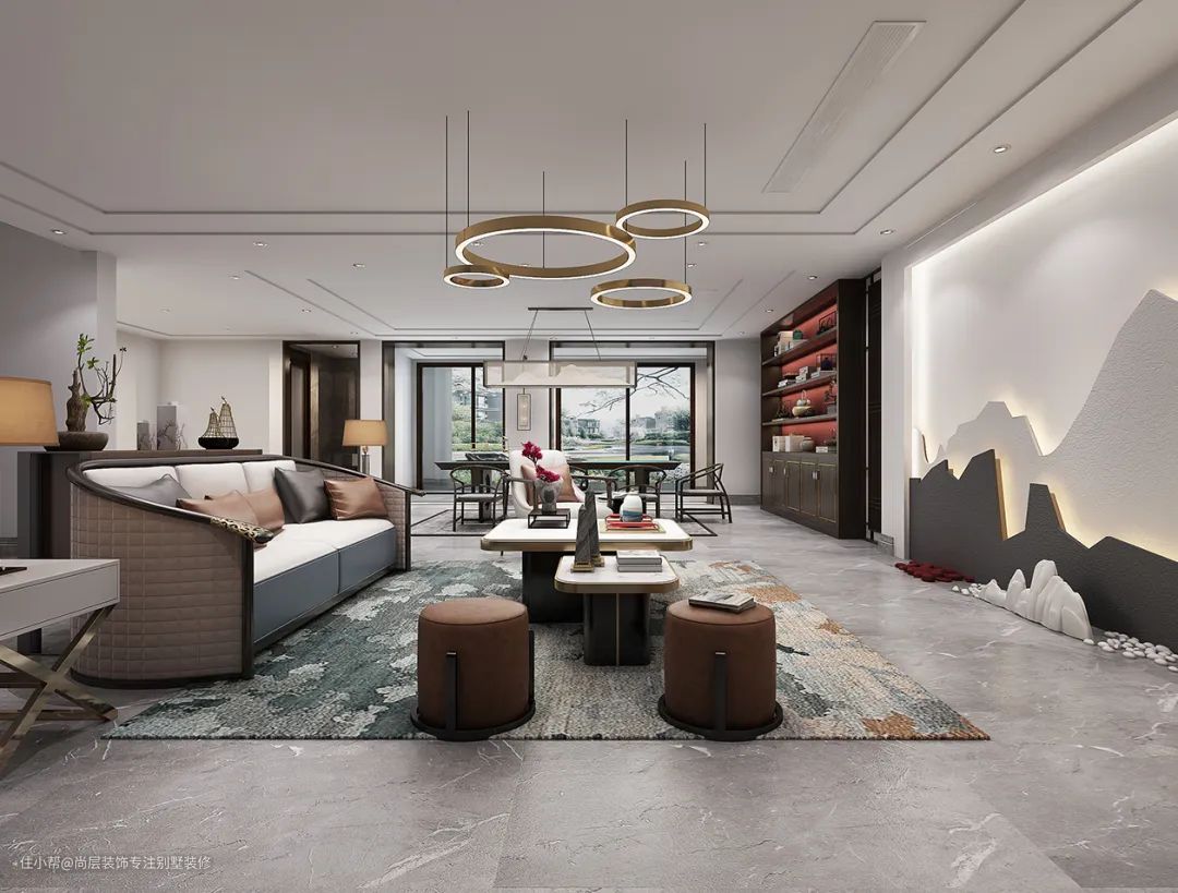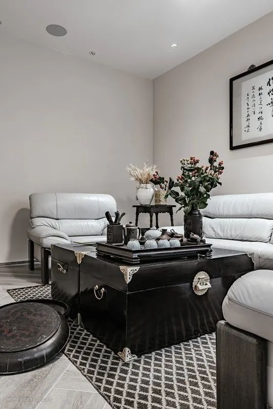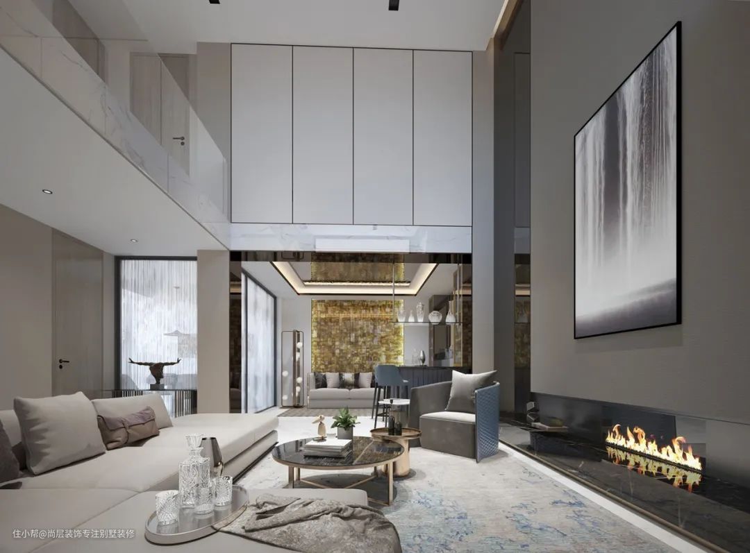 设计师用大面积的山水装饰画,填补了挑高空间带来的单调感,精致小巧的艺术装置,体现出屋主人不凡的品味与格调,使得这个舒适区更加与众不同。