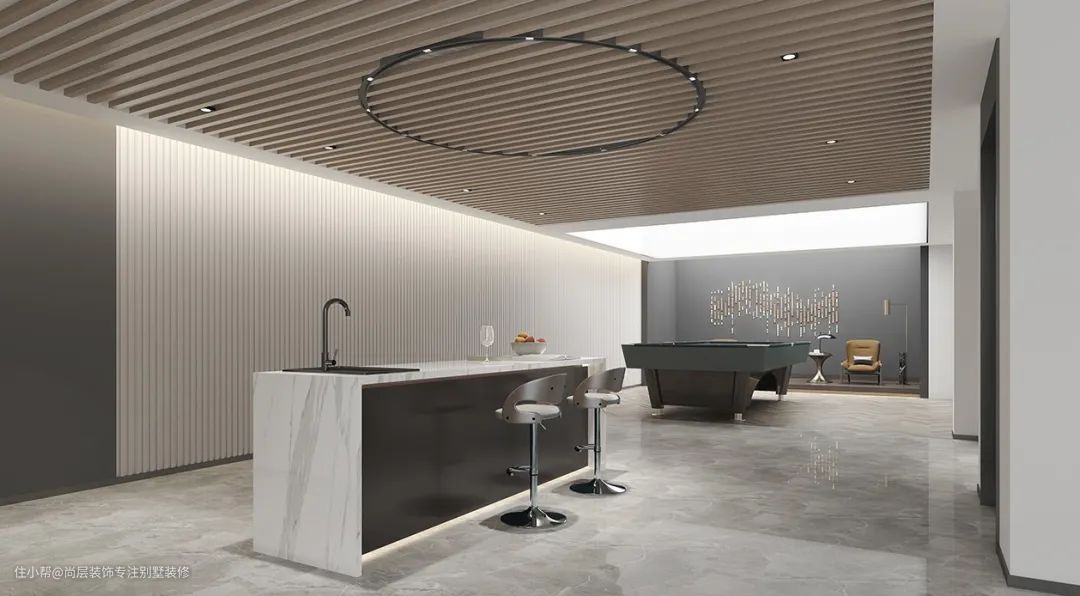 该地下室延续了空间整体的协调性,多功能的复合布局让空间价值实现最大化,在不同分区的的顺畅流转中,自然的气韵自由穿梭,释放美感与层次。