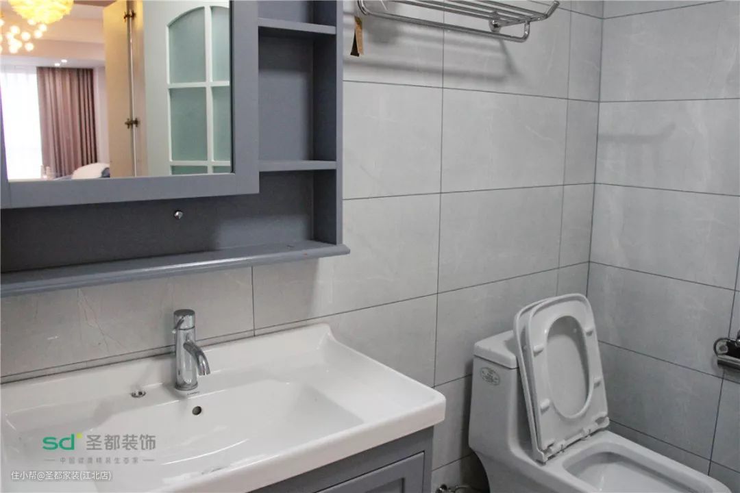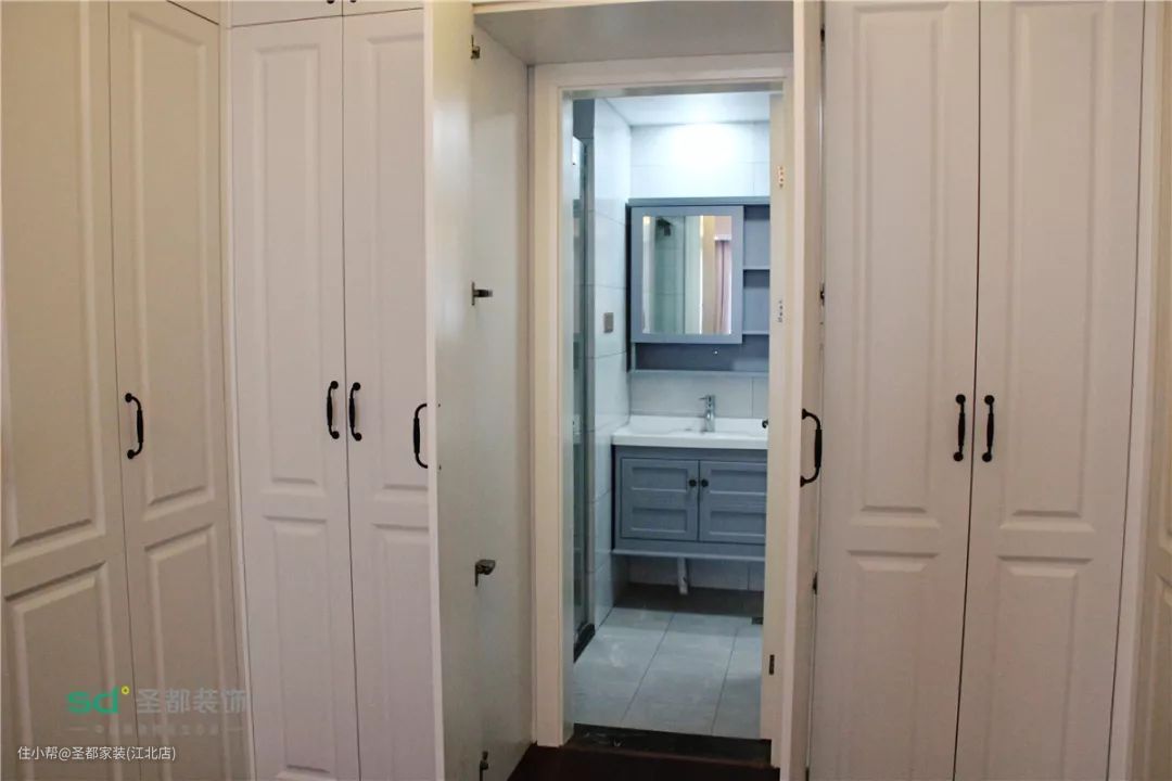知道你怕冷,地板下面铺了地暖,隐藏式的卫生间做在了房内,这样,你和宝宝洗澡便不会着凉了。