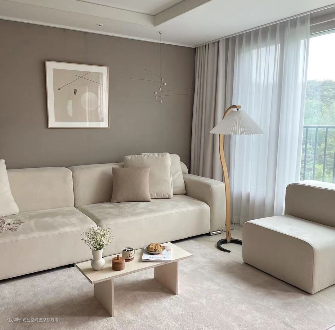 配色选择:常见的配色奶油色、奶茶色和奶咖色。奶油色就是介于白色和米黄之间的色彩;奶茶色就是白色和米黄之间,加入了暗灰色,空间整体氛围偏暗;奶咖色就是奶白色和奶茶色之间的色彩,充满温暖柔和的氛围感。