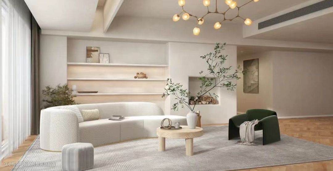 奶油风是一种非常治愈的氛围感,迅速风靡的一种设计风格,整体采用比如米黄、米白、暖灰、白色以及原木色等等,这些轻盈温柔、饱和度低,但明度较高的奶油色所形成的风格。唯一的重色就是色彩比较深的木质或者植物的墨绿色,视觉上硬装简洁、软装柔和。