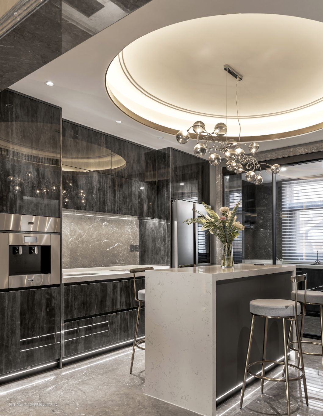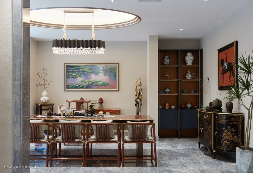 有人选择格栅式的质朴、有人偏爱亚克力或玻璃材质的通透,而作为别墅大宅,圆形吊顶则成了精英人士们,最常选择的对象。