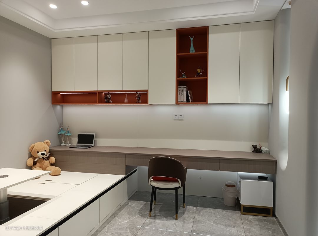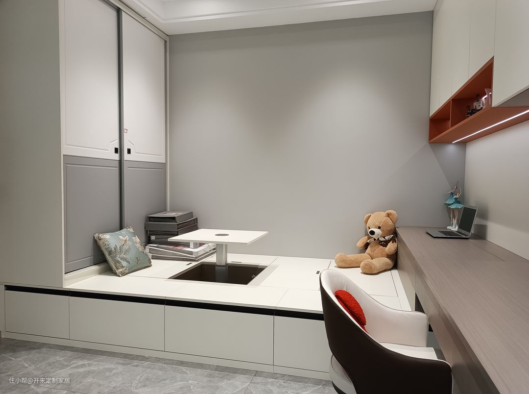 今天分享的榻榻米功能房实景案例,在白灰色系与木纹搭配的简约自然中点缀上橙色的活力。