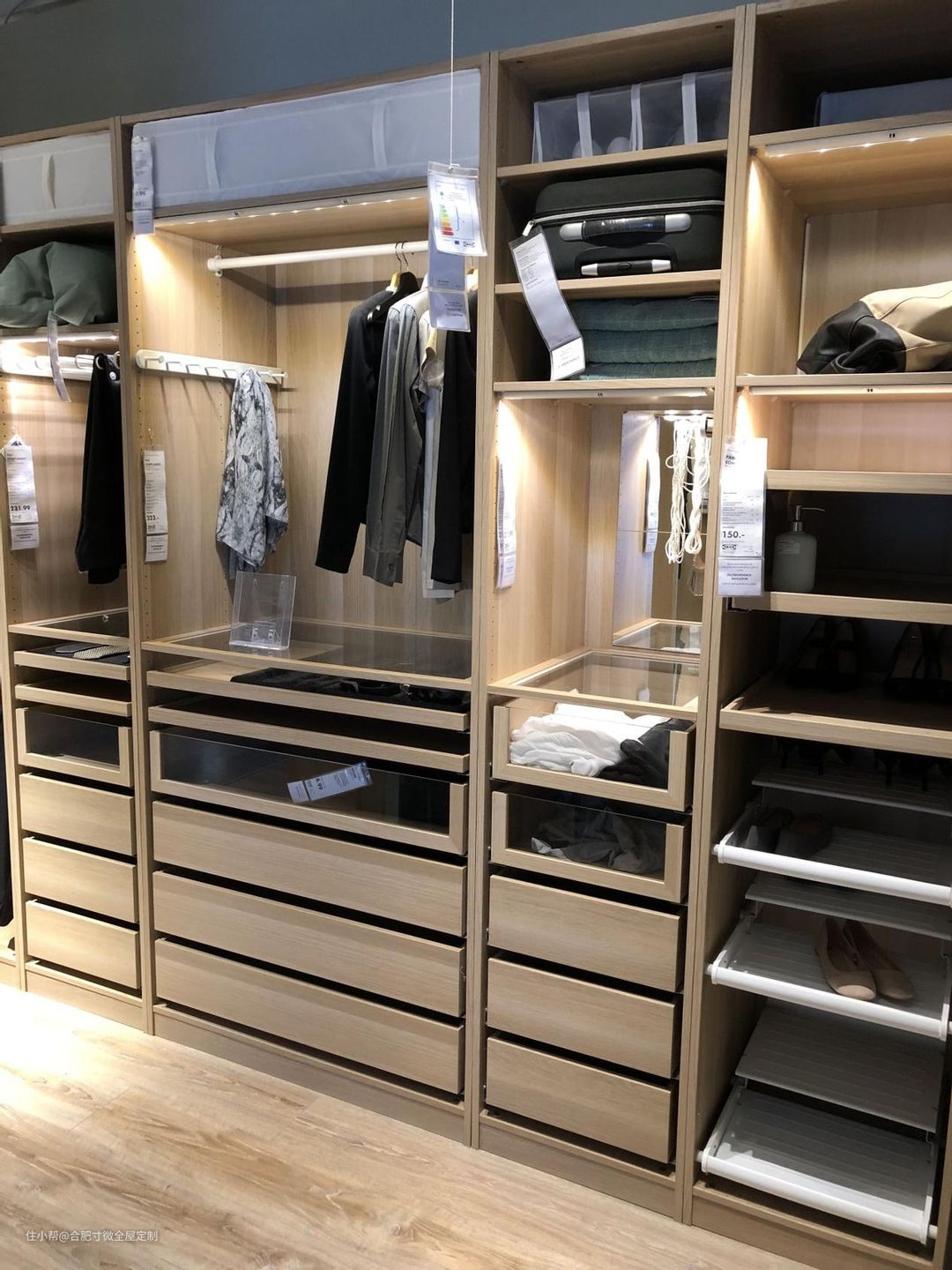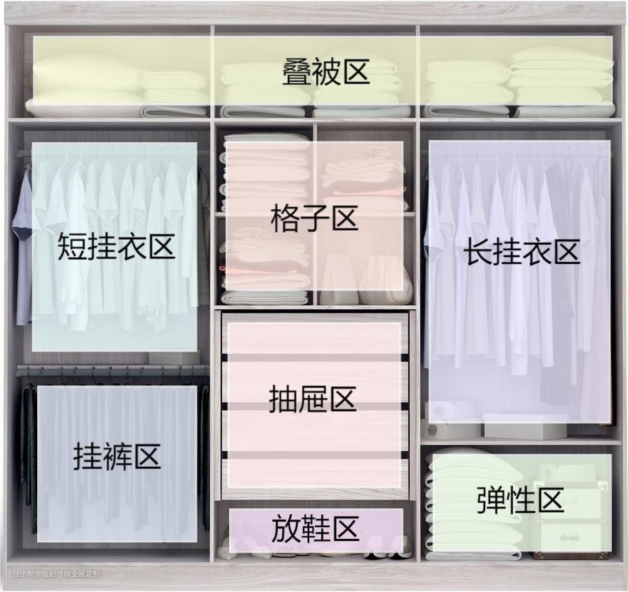 一般人的衣柜是不是只有开放格+挂杆就完事了,再加上不细致分类,衣柜找衣服就成了一件头疼的事,不如在当初设计衣柜的时候就划分好功能区,事半功倍。