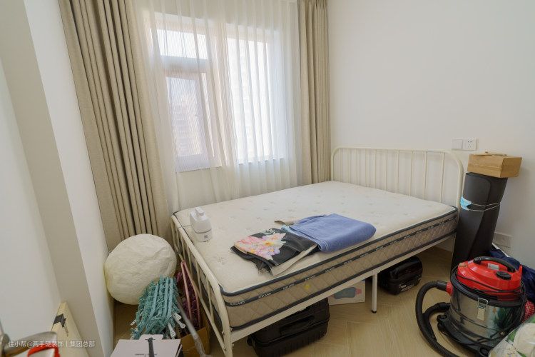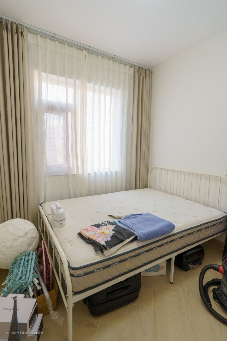 夫妻俩短期内没有要孩子的打算,还没想好次卧的安排,只是摆放了空床闲置,暂时成为杂物房