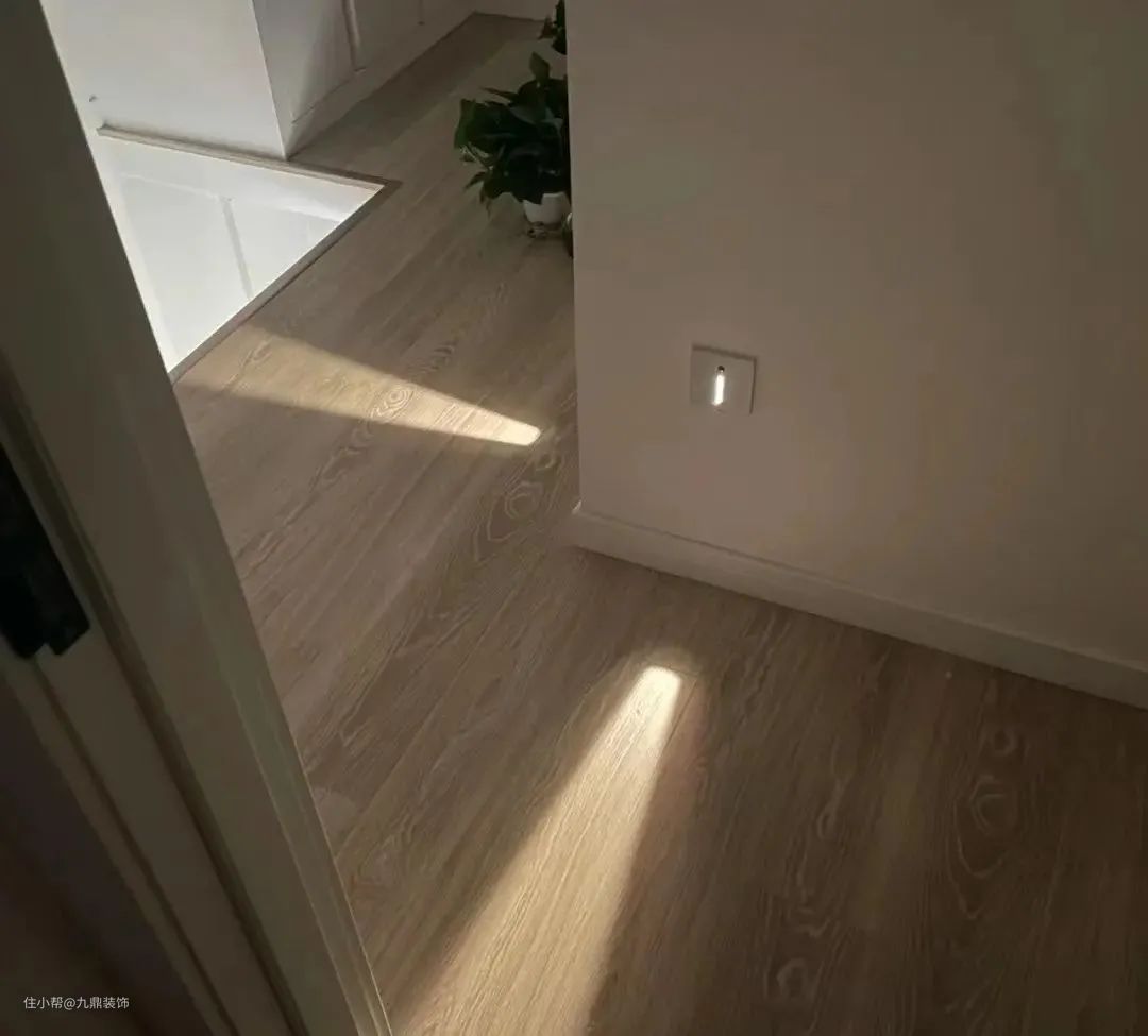 首先,要拒绝门槛石,保证各空间出入口的地面都是平坦的,最简单的方式就是同一材质全屋通铺。如果不想通铺,可以用瓷砖、地板或者金属收边条替代,只要保证地面没有高低差即可。
