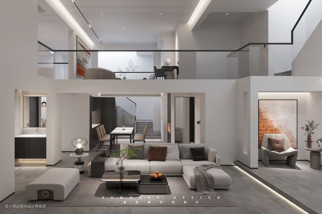室内布局一般是以此为起居室,餐厅,厨房,卫生间,客房等,二层作为私密性较强的卧室和书房。