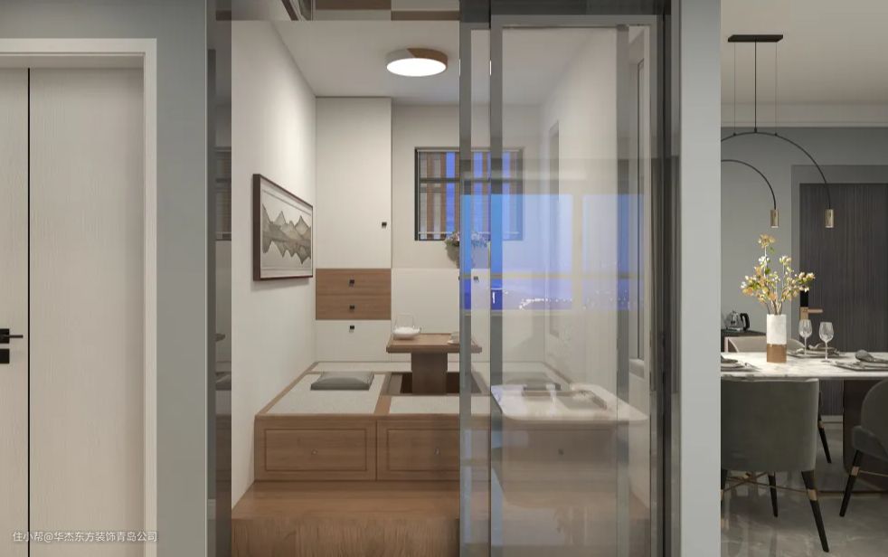 △ 在客厅部分单独隔离出一个茶室的空间,为家庭生活增添了休闲场所。