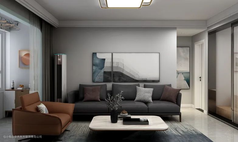 △ 客厅无疑是整体装修风格和格调的主要载体,客厅设计是居室的核心,简单利落的设计,低调高级的无色系配色,打造了现代简约风格氛围。