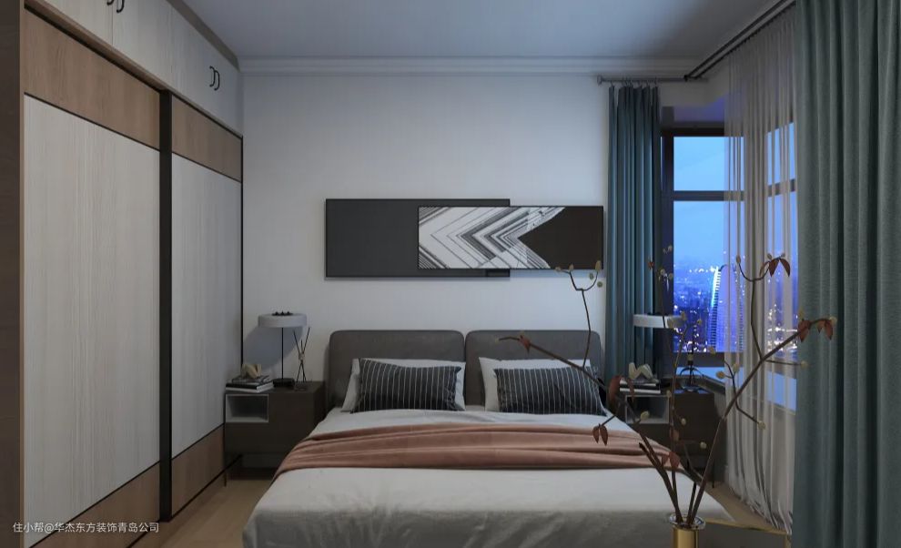 △ 主卧墙面和顶面都是大白墙,简洁干净,整个空间令人身心舒适。