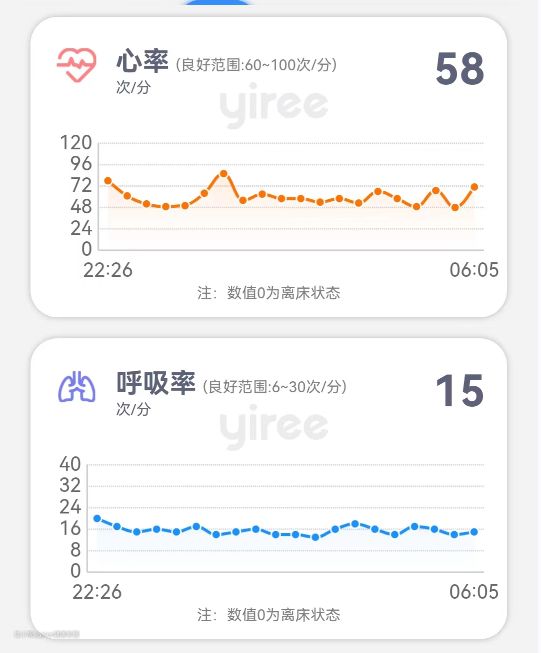 智能睡眠系统是通过生物雷达,对睡眠时的人体数据进行实时监测。通过手机APP生成完整的睡眠报告,以此来监测使用者的睡眠质量和健康状况。在这些生命体征数据中主要通过呼吸、心率、睡眠时长、体动次数等多项数据的重点监测,实现对久卧、离床、呼吸心率、离线四类异常情况进行预警。这个功能对于老年人尤其必要。