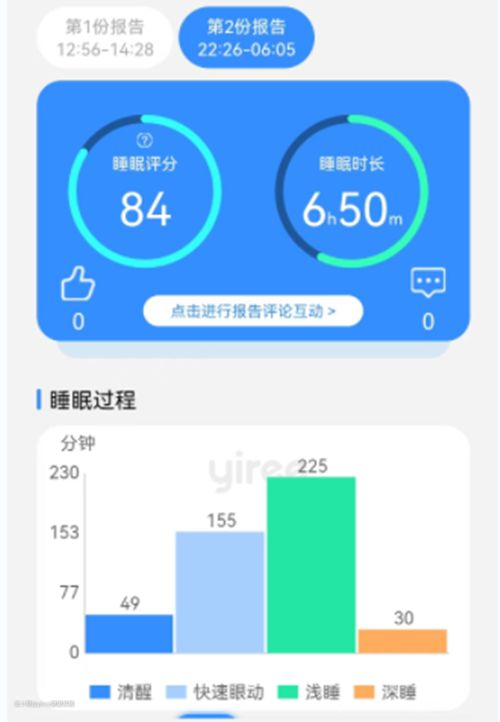 睡眠报告同时给出了睡眠评分,便于使用者根据自己的数据对睡眠质量进行判断,及时调整作息时间和生活习惯,保证良好的睡眠。
