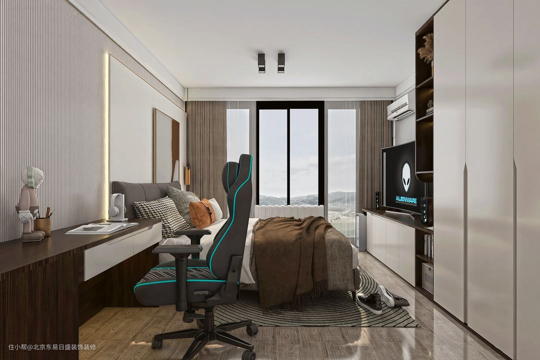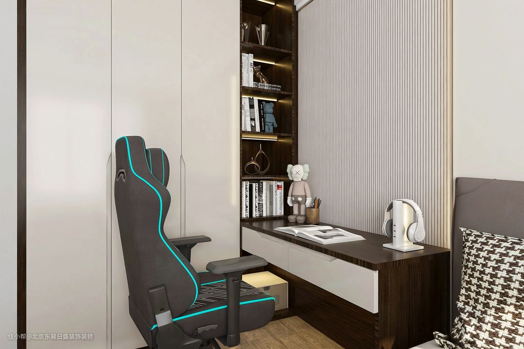 ▲ 男主人房 男主人经常需要居家办公,整齐设计了内嵌衣柜和书桌的空间摆放令客户满意,整齐干净的空间可以让主人更加高效的工作。