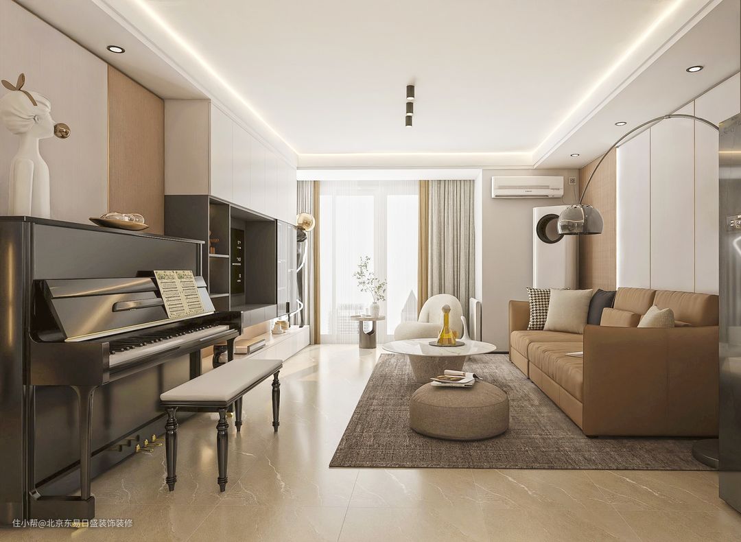 ▲ 客餐厅 客厅和餐厅对于有两个孩子的家庭是多功能多用途的空间。客厅通过摆设家具钢琴和电视柜搭配简洁的沙发和茶几建立一个稳定的区域满足需求。餐厅与开放式厨房一体化设计最大限度的获得了自然采光的优势。