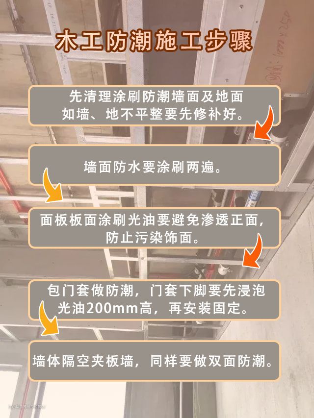 (5)墙体隔空夹板墙,同样要做双面防潮。