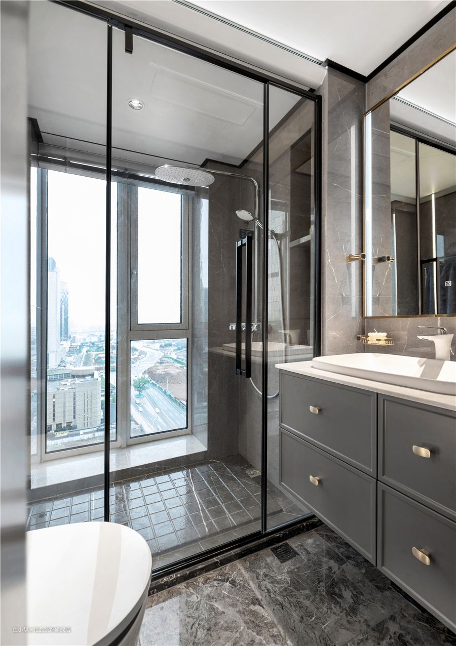 2.考虑门框门槛的挡水性:考虑卫生间玻璃隔断是否有门框挡水。如果没有门槛石,一般门槛石应高于地面1.5cm-2cm,否则淋浴水从门下流出,不能达到干湿分区的目的,容易造成不便。需要注意的是,不要使用滑道,因为滑道内的水和灰尘很难清理,长时间后会发臭。