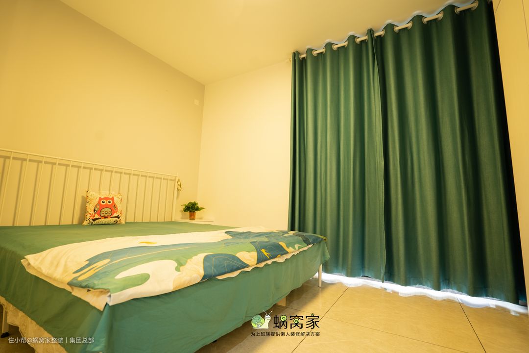 ▼青绿色的窗帘,搭配青绿色的窗帘,在一个黄色的房间里,冷暖撞色真的就很美的。