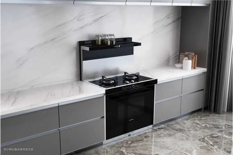 橱柜打算认真做饭的,橱柜选材就必须扛得住高温、水渍、油烟这些,用起来才省事方便好打理,柜门占据了橱柜的80%的颜值,但除了好看之外,还得实用。