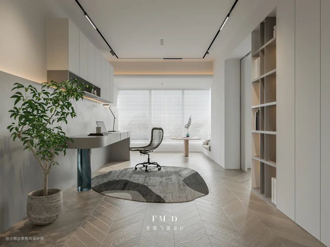 【万科馨园】的这个叠墅里的书房,就是一个中岛书房,位于主卧和儿童房之间,一家三口共同使用,非常方便!