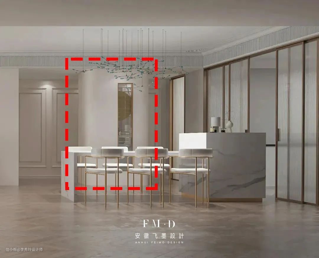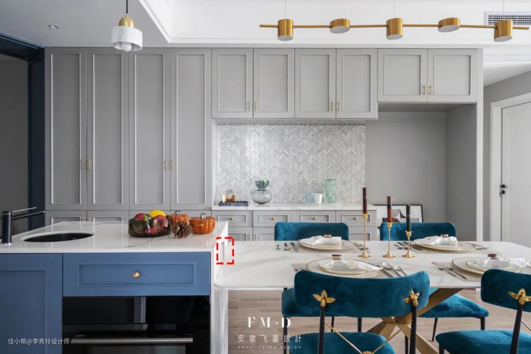 此外,不管是厨房的中岛还是餐厅的中岛,考虑到使用需求,建议在岛台上安装插座。可以是常规的五孔插座。