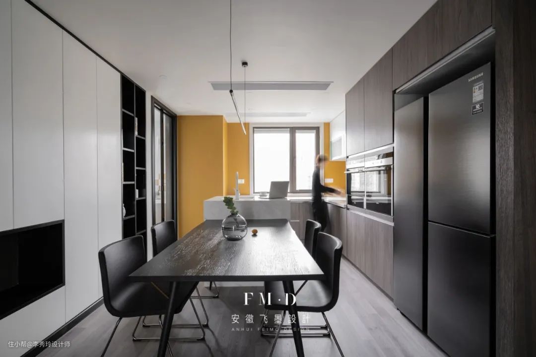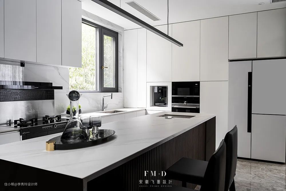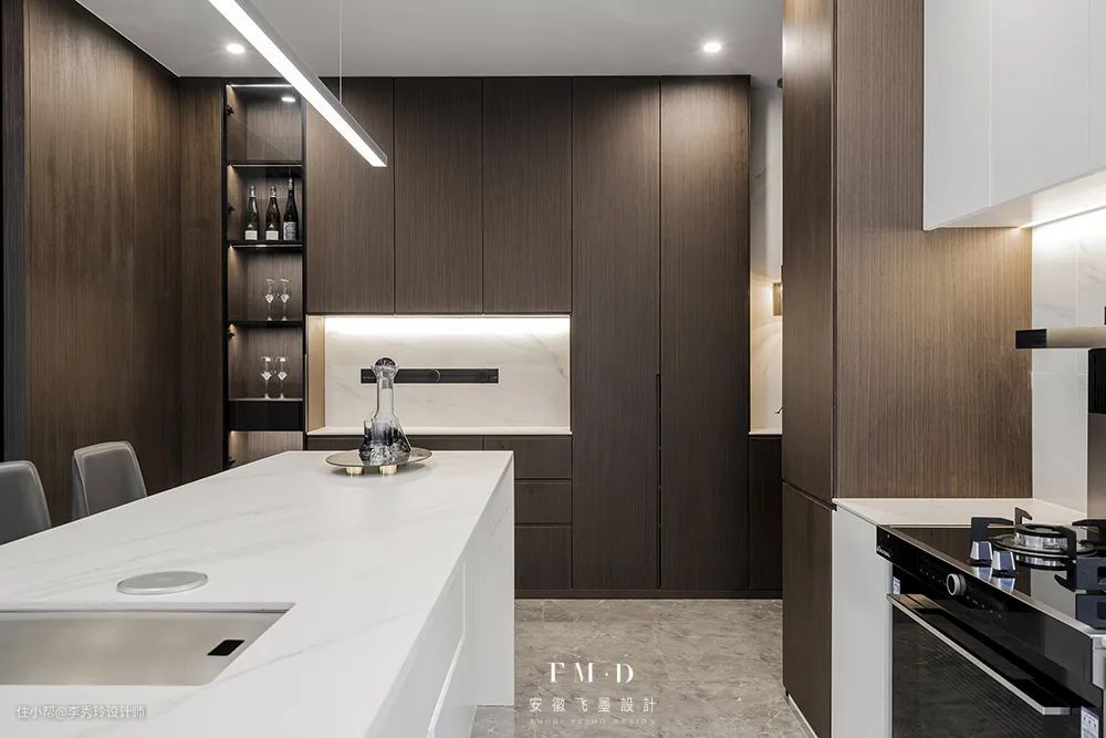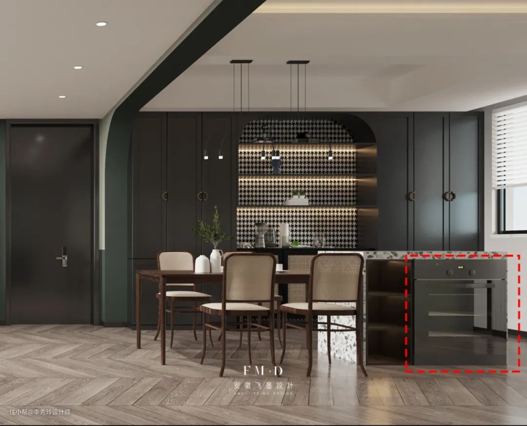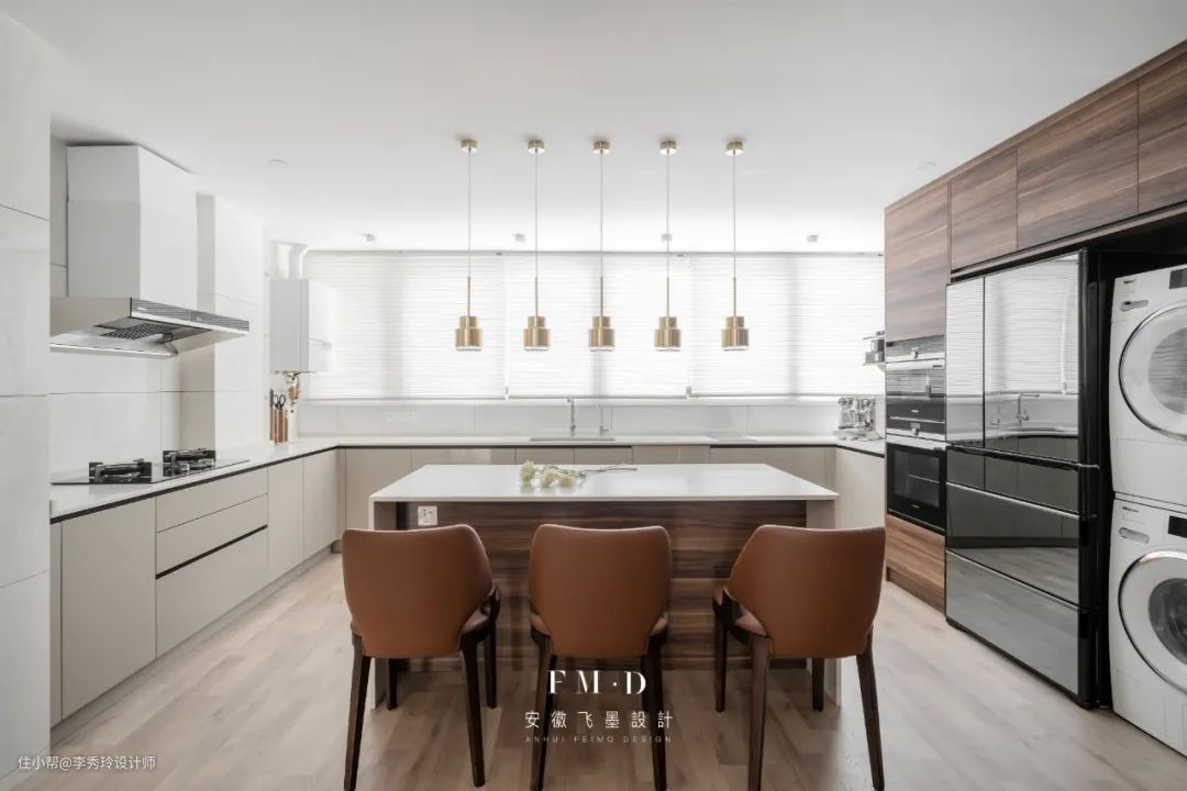 如果厨房的面积实在有限,也可以将岛台设计在餐厅,盘活餐厅不说,还可以兼顾西厨功能。