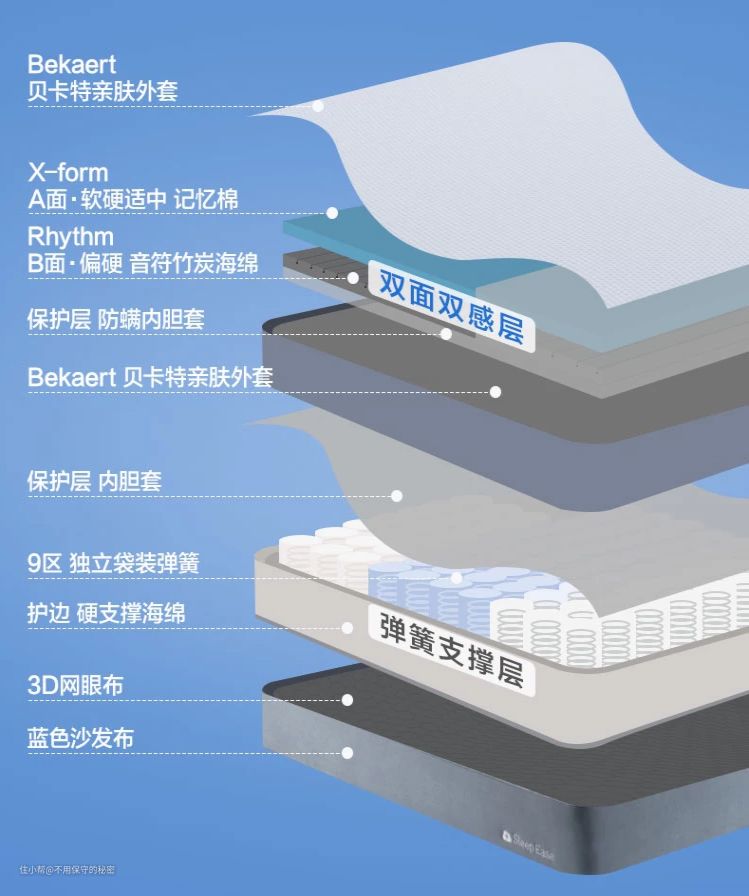 在网上挑选了两天,最终确定了网易严选云舒弹簧床垫,本身也是网易的粉丝,这款云舒弹簧床垫吸引我的除了颜值,主要还是双面可用,双面不同的材质,带来不同的睡眠感受,让我们也能有多一种选择。
